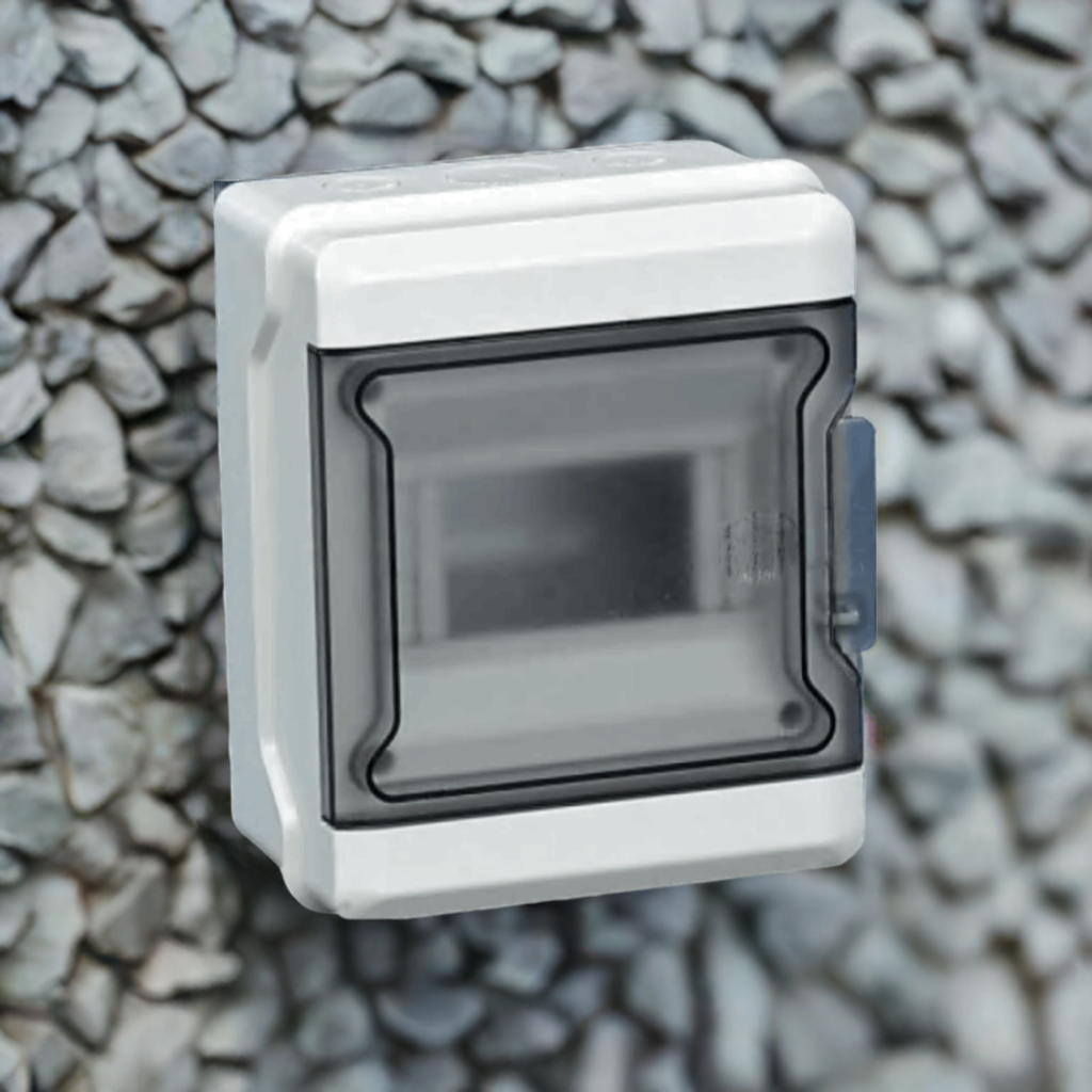 12 Way DB IP65 Waterproof – Reliable distribution box with EN50022 DIN rail connection and IP65 protection. Made from flame-resistant ABS plastic with a sturdy, flexible front cover to prevent cracking. Features a moveable fixing system for precise alignment and an adjustable DIN rail for straight installation. Includes a detachable earth/neutral bar and a sleek smoky opaque front cover.