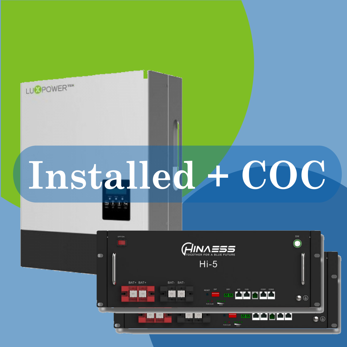 In summary, the Combo 5kW LuxPower LXP + 2x 5kW Hinaess RM Batteries with Installation and COC offers a high-capacity, professionally installed solution for anyone seeking reliable energy storage, smart energy control, and long-term savings—all in one ready-to-use package.