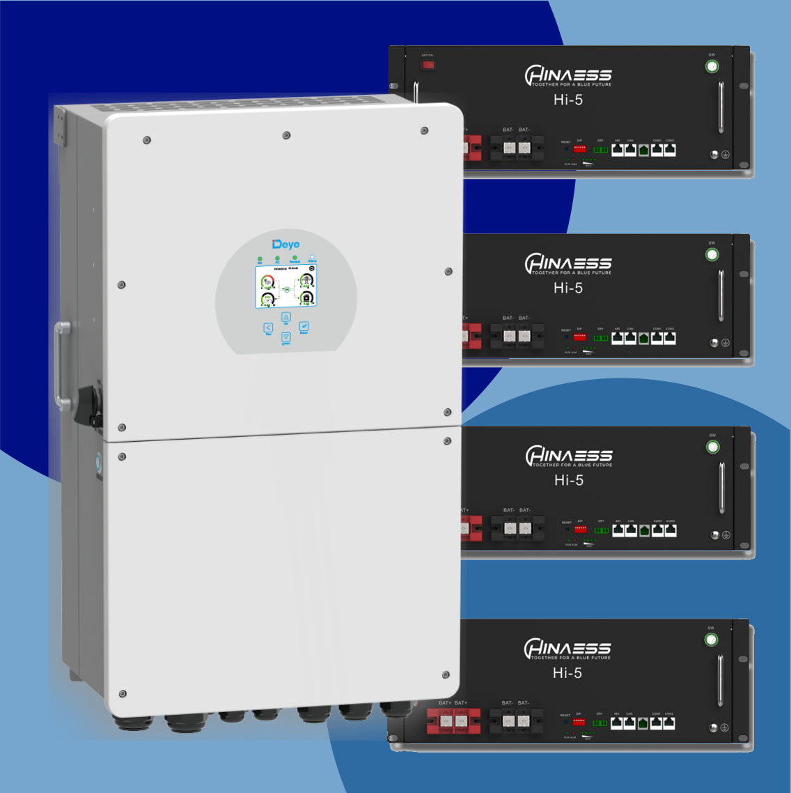 Deye 16kW Hybrid Inverter + 4 x HinaESS Hi-5 Lithium Batteries (20kWh) Combo